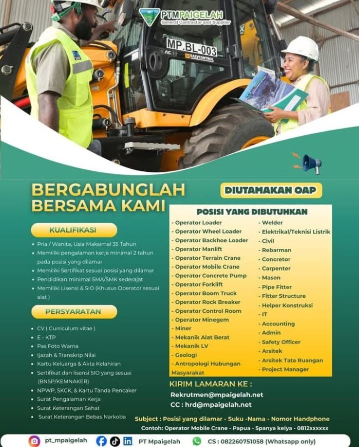 Kirim lamaran ke: rekrutment@mpaigelah.net